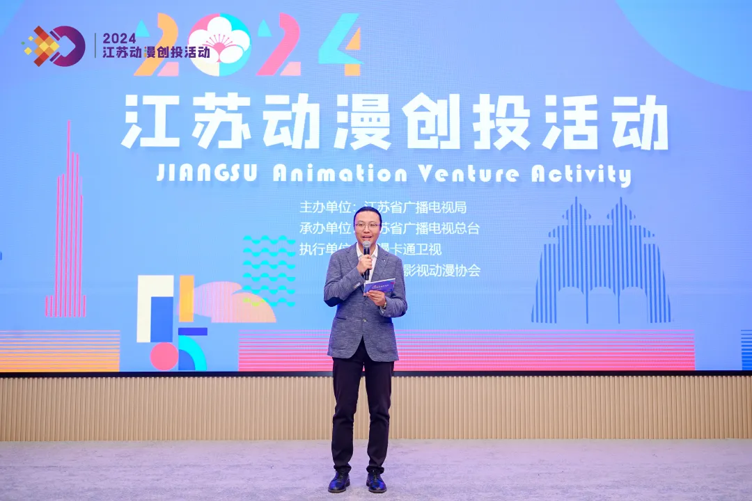 为促进动漫行业发展,举全国同行之力,创江苏动漫发展新篇章,11 月 20 日,由江苏省广播电视局主办、江苏省广播电视总台承办、江苏省影视动漫协会和优漫卡通卫视频道执行的2024江苏动漫创投活动在南京举行。中国动画学会会长马黎,江苏省广播电视局一级巡视员于国民,江苏省广播电视总台党委委员、副台长崔峰等领导,业内专家学者,动画制作人、投资方及媒体代表等200余人共同出席活动。