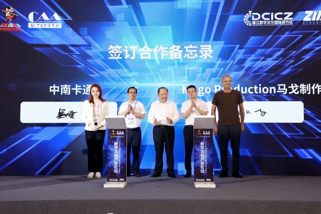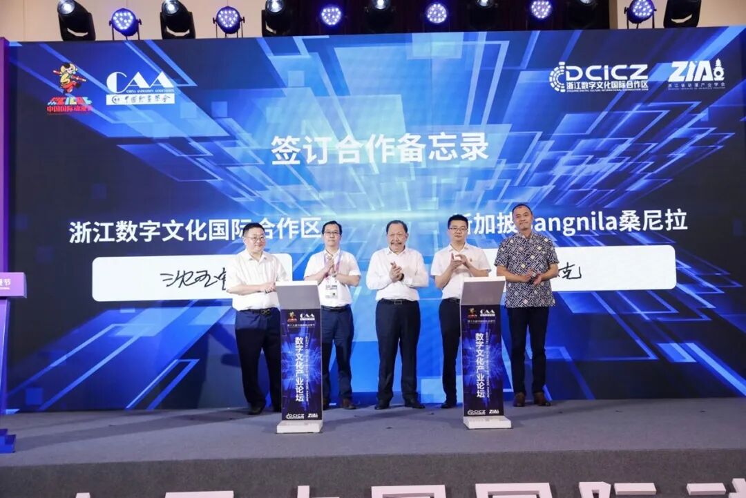 国家文化出口基地——浙江数字文化国际合作区与新加坡Sangnila(桑尼拉)、椰子集团,中南卡通与Mago Production马戈制作、金鹰卡通等四个合作项目现场签约。未来双方将就动漫作品创作、产业化发展和国际合作等领域展开多方位合作。